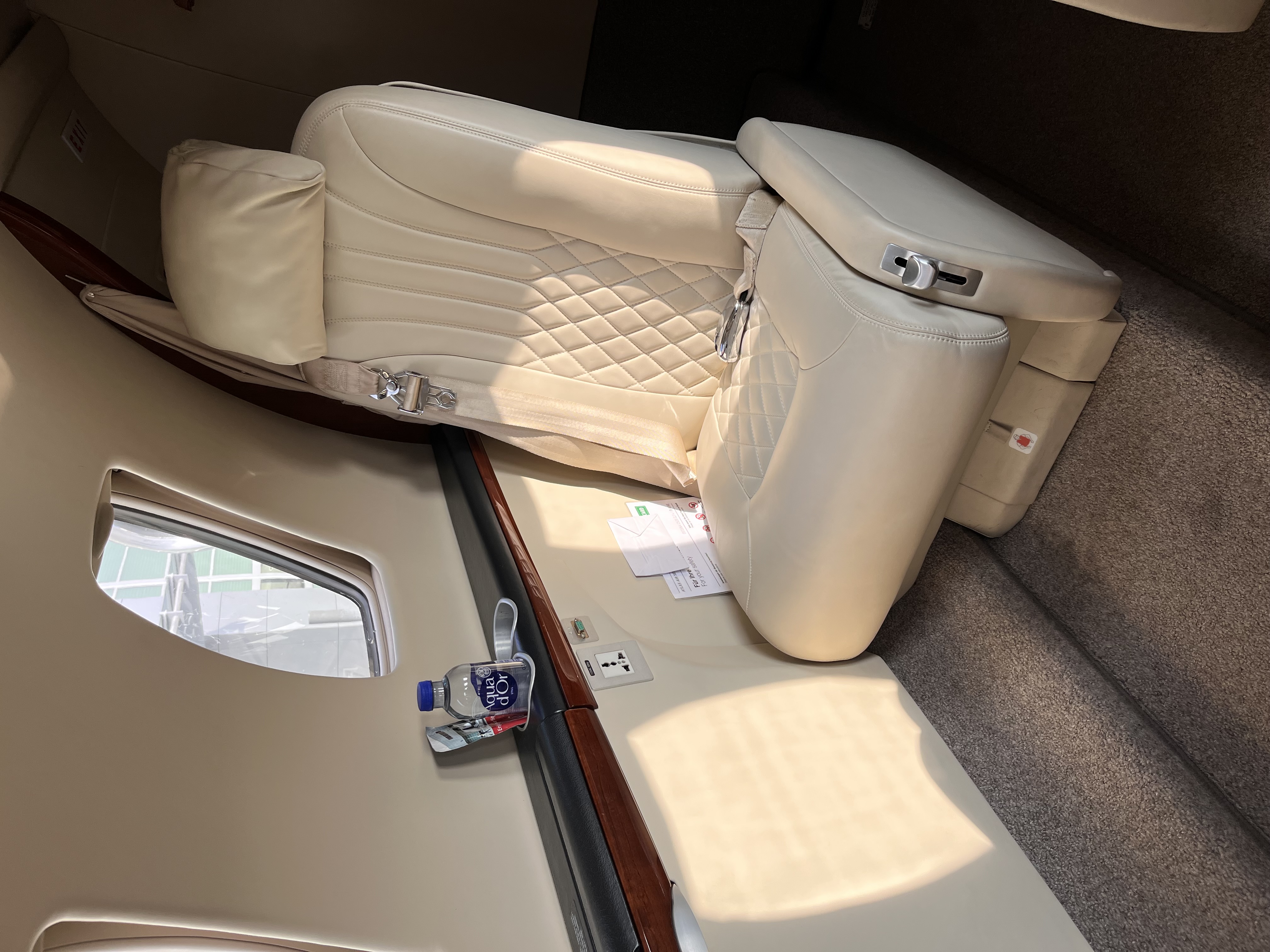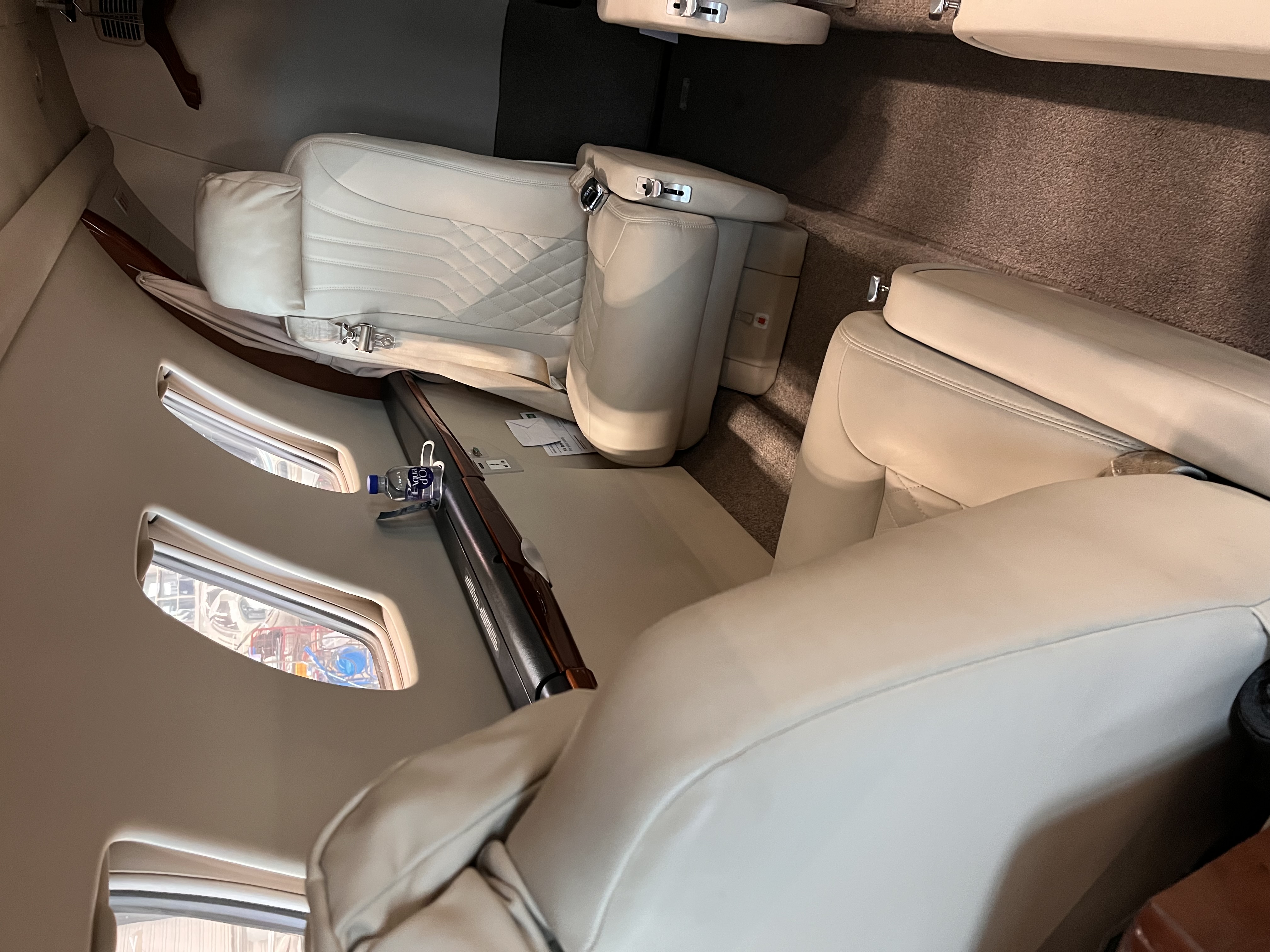 Belted flushing toilet in the aft lavatory
