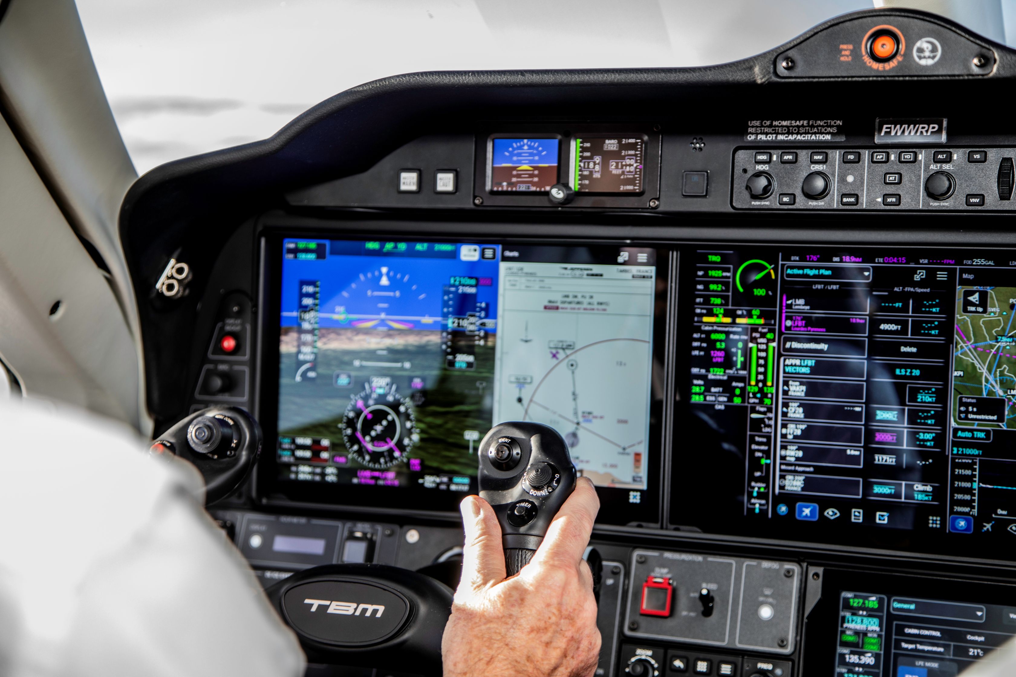 - Three 12’’ WUXGA high-resolution touch displays (2× PFD, 1× MFD) providing a clear, intuitive pilot interface